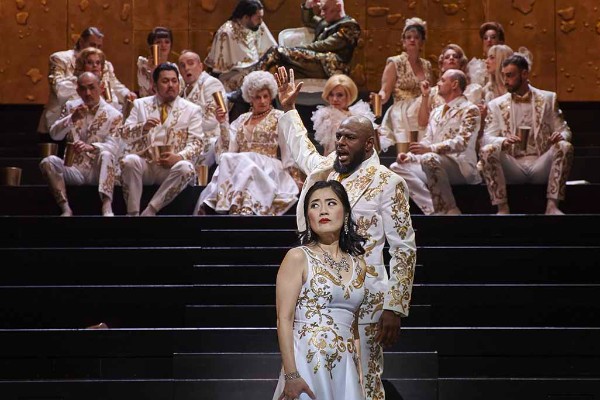 Jordan de Souza leidt een sterke vocale bezetting en ook het belangrijke koor presteert uitmuntend. De twee hoofdrollen waren heel goed bezet. Mandla Mndebele zingt Mazeppa met een robuuste bariton, die zo in de grote dramatische rollen kan stappen. Anna Sohn heeft dan weer een prachtige lyrische sopraan, waarmee ze alle emoties van Matréna kan uitdrukken. Sungho Kim zingt met een stralende tenor, zijn Iskra doet soms wat aan een Werther denken (hij is uiteraard ook verliefd op Matréna). Artyom Wasnetsov was een degelijke Kotchoubey, al was zijn Frans grotendeels onverstaanbaar. Denis Velev was de religieuze leider met een mooie bas, maar wel met een sullige karaktertekening van Berger.