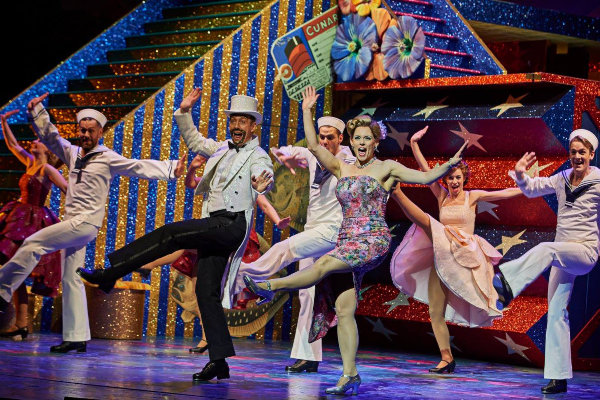 De productie werd omschreven als een "bühnenpraktische Rekonstruktion der Partitur". Ik dacht dat een operettepartituur en -libretto per definitie "bühnenpraktisch" is, maar soit. Misschien bedoelen ze daarmee dat ze een karakter toevoegen: Paul Abraham treedt zelf op en speelt tegelijkertijd de (spreek)rol van de Amerikaanse gouverneur in Hawaï. Dat geeft vooral de mogelijkheid om overbodige verwijzingen naar Abrahams biografie in het verhaal te verwerken. Hoe dan ook, Thomas Enzinger heeft een swingende regie gemaakt in een kleurrijk glitterdecor met overvloedige dansjes van choreograaf Ramesh Nair.