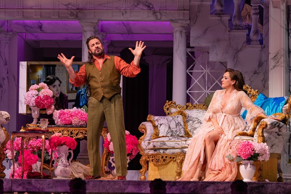 Zijn eenheidsdecor bestaat uit een marmeren constructie op een draaiplateau, waarin we Rome moeten herkennen. Tijdens de ouverture wordt op de marmeren voorwand een video geprojecteerd, die zijn inspiratie vindt in het Muntgebouw zelf. De koninklijke en Europese loges worden weerspiegeld, de kandelaardragers worden met AI tot leven gewekt, terwijl de Muntluchter naar beneden tolt. De vier plafondmuzen zullen de rest van de voorstelling als marmerkleurige figuranten de boel opvrolijken. Het is een begin dat verwachtingen schept.