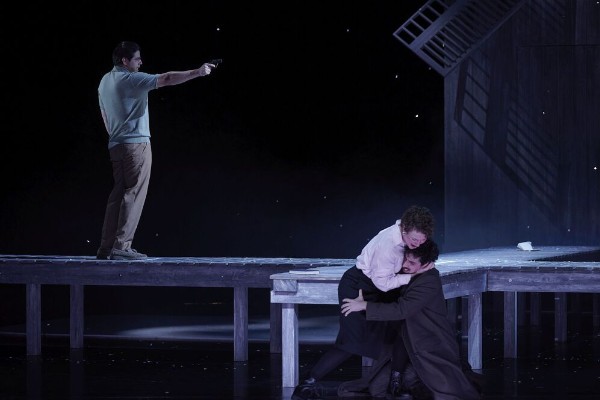 Regisseur Verena Stoiber plaatst de handeling wel in een iets ander kader. Aan het begin van de opera zit Onegin alleen op een stoeltje, een beetje buiten de actie. We zien Lenski drie keer sterven: tijdens de ouverture, aan het einde en nog eens op het gebruikelijke moment tijdens de opera. Het is alsof Onegin zijn daden overpeinst en hoe het zo ver is kunnen komen dat hij zijn onbeantwoorde liefde - Lenski dus - heeft kunnen doodschieten in het duel. Het is een overbodige toevoeging, die de voorstelling niet slechter maakt als ze zou weggelaten worden.
