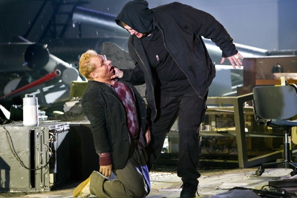 RFID heeft effectief allerlei toepassingen, maar de kracht om een aambeeld te splijten, laat staan een draak te doden, horen daar niet bij. Voor iemand die de pretentie heeft om een Ring voor de 21ste eeuw te maken, komt dit wel heel ongeloofwaardig over. Dan had hij nog beter gewoon een anachronistisch zwaard behouden. Die ongeloofwaardigheid zal nog groter worden in Götterdämmerung als datzelfde zwaard een -weliswaar kleine- rol speelt tijdens de bruidsnacht van Brünnhilde en Siegfried/Gunther. Het is misschien een detail, maar het zijn net dat soort details waarmee een enscenering staat of valt. Nog zoiets is Wotan... nu heeft hij ineens nog maar één oog, maar dat had al zo in Rheingold moeten geweest zijn.